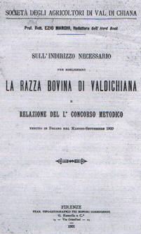 Anni di studi a contatto con i “giganti bianchi” confluirono nel 1895 in una prima monografia intitolata “La razza bovina di Valdichiana e le sue varietà”. La chianina, come molti già sapranno, è una razza bovina tipica di questo territorio, facilmente riconoscibile per il suo manto porcellanato e per le sue dimensioni straordinarie: è il bovino più grande del mondo. Nel 1901 il Professor Marchi dette un altro importantissimo contributo alla zootecnica pubblicando il libro “Sull’indirizzo necessario per migliorare la razza bovina di Val di Chiana”.