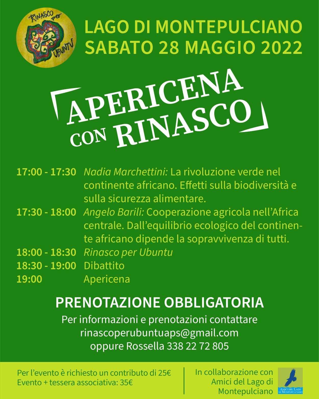 Sabato 28 maggio si terrà presso presso il centro visite “La Casetta” del Lago di Montepulciano una presentazione sulle attività svolte dall’associazione e sui progetti futuri, sui temi riguardanti la biodiversità agricola nell’Africa Orientale e sui temi della cooperazione sociale. L’iniziativa “Apericena con Rinasco” prevede una serie di interventi a partire dalle ore 17 coni Anna Marchettini, docente dell’Università di Siena e Angelo Barili, naturalista del CAMS. La presentazione sarà seguita da un’apericena, il cui ricavato sarà utilizzato per sostenere le attività di solidarietà e sviluppo sostenibile in Burundi.