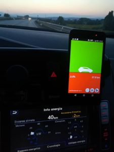 «Perché l’applicazione funzioni, occorre infine che sull’auto sia installato un dispositivo On Board Diagnostic, facilmente reperibile anche online, con cui tramite Bluetooth il sistema possa scambiare dati con lo smartphone. L’interfaccia per l’utente è molto intuitiva, compaiono due zone, una rossa e una verde e un’auto che procede in avanti: se l’auto si muove tra le due zone, significa che si sta procedendo in regola con la tabella di marcia, e che sarà necessario fermarsi a ricaricare quando il sistema ce lo ha predetto; se l’auto si sposta nella zona verde vuol dire che si sta impiegando meno risorse di quelle messe in conto ad inizio viaggio, per cui si arriverà con un eccesso di batteria rispetto a quella preventivata; se invece l’auto si muove nello spazio rosso, allora si sta mantenendo una velocità troppo elevata e la batteria dovrà essere ricaricata prima di arrivare alla destinazione annunciata, con il rischio però che non sia sufficiente ad arrivare alla prima colonnina presente lungo il percorso. Power Cruise Control si basa su algoritmi specifici per i vari tipi di auto elettrica, tra cui le versioni di Nissan Leaf e Renault Zoe, e presto arriverà anche la versione per Jaguar e Tesla».