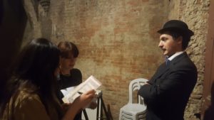 Che cos’era, nello specifico, il Borgo dei Delitti? Per chi ha giocato a Cluedo, è molto facile fa capire. Gli organizzatori hanno preparato una storia di crimine e mistero, in cui tutti i partecipanti (circa 35, suddivisi in sette squadre provenienti da tutta la provincia) dovevano svolgere un’indagine per scoprire il colpevole dell’omicidio e del furto di un libro prezioso. L’indagine si svolgeva lungo i vicoli del centro storico di Torrita di Siena, alla ricerca di indizi predisposti dagli organizzatori o interagendo con i gli altri personaggi, interpretati da bravissimi attori dell’associazione Rizes che si erano preparati a dovere, in un misto di fedeltà al copione e di improvvisazione teatrale. Vestiti nei costumi dell’epoca (l’indagine era ambientata nell’Italia degli anni ’30) e fedeli alle caratteristiche culturali e sociali del periodo, gli investigatori hanno interagito con il commissario, la vedova, il banchiere, il farmacista e tanti altri personaggi. Alla fine del gioco, la squadra che è riuscita a comprendere i dettagli della vicenda e a smascherare il colpevole dell’omicidio si è conquistata la vittoria.