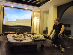 A fine serata Xu Hong Fei ha ammesso la delegazione alla zona più preziosa e riservata della sua abitazione: gentile, affabile, a tratti addirittura divertito e sorridente (atteggiamenti ben poco conosciuti in un personaggio sempre molto riservato e poco incline a mostrare i suoi stati d’animo) l’artista ha prima aperto le sale in cui trovano posto le preziosissime opere del suo maestro Huang Yong Yu, pitture che riescono a mozzare il fiato tra cui una maxi-tavola a parete valutata 2 milioni di Euro, e poi dell’autentico caveau in cui, protette da un minuzioso sistema antifurto e tenute a temperature costante di 16° dall’aria condizionata, sono esposte le sue realizzazioni in giada, preziosissimo materiale caratteristico della Cina.