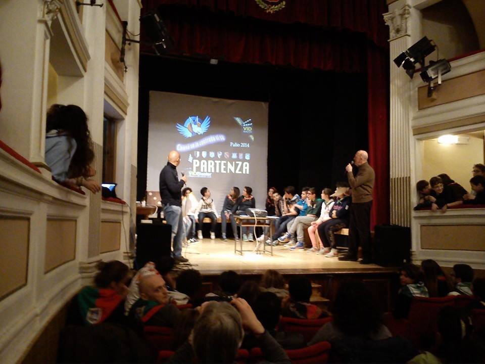 Ma la contrada Stazione non va certo a casa a mani vuote, è lei, infatti, la vincitrice del quiz “Chissà se in contrada si sa”, grazie ad Elia e Matilde, aiutati nell’impresa da Enrico e Chiara. I piccoli protagonisti delle otto contrade, hanno intrattenuto il pubblico presente al Teatro degli Oscuri, cantando stornelli e dando prova delle loro conoscenze su Torrita. Una serata all’insegna del divertimento per grandi e piccini, condita dalla simpatia dei due conduttori dello spettacolo, Alfredo Capitani detto “Cacio” e Stefanucci Carlo detto “Chiallino”, due veri intrattenitori.
