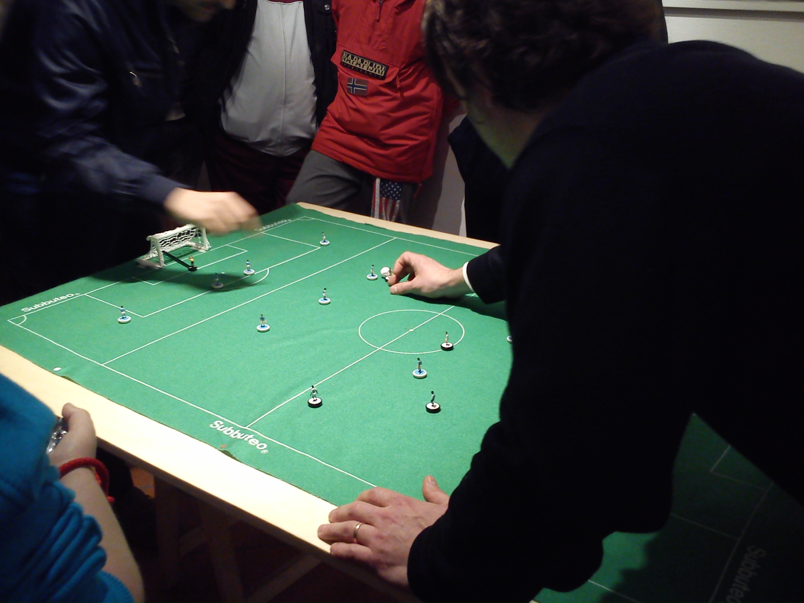 Le serate pre palio servono a stemperare gli animi e a condividere l’adrenalina della grande gara di domenica, e allora cosa c’è di meglio di una sfida a Subbuteo? Anche se a dire il vero non troppo rilassante vista l’agitazione dei participanti, ma comunque tranquilla messa a confronto con eccitazione che vivranno i miei amici contradaioli domenica 23 marzo.
