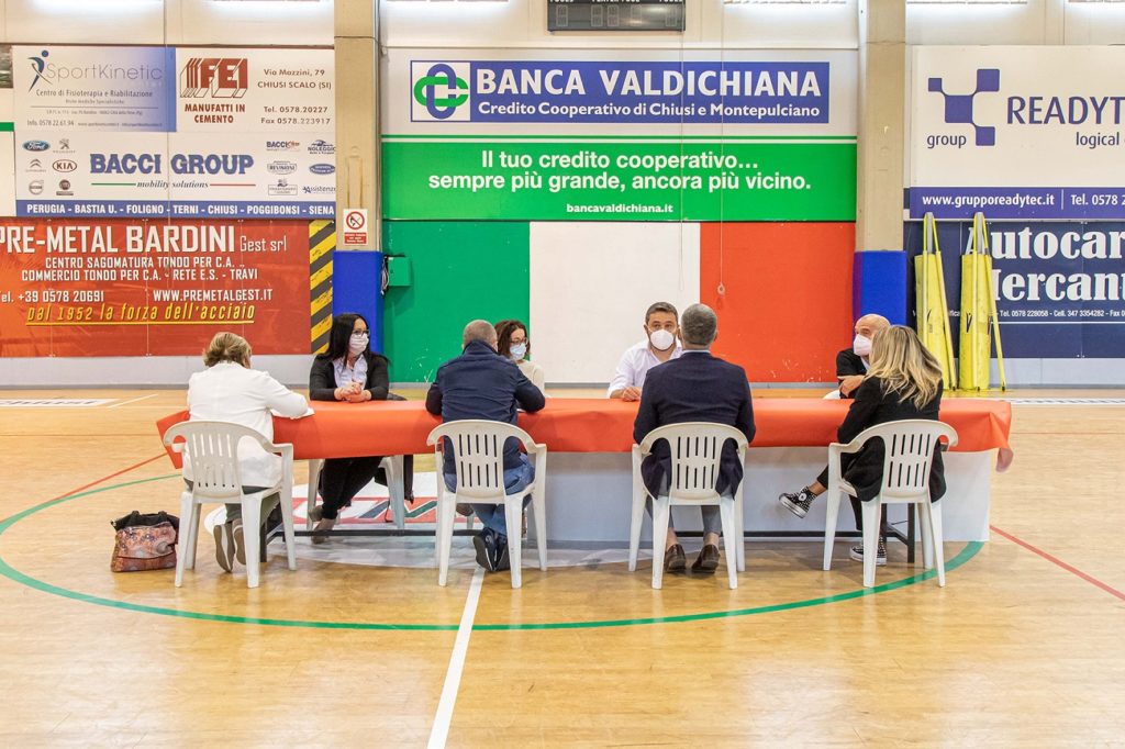 La giunta comunale di Chiusi, considerato lo stato di emergenza nazionale da Covid-19, ha approvato la convenzione con l’Azienda Unità Sanitaria Toscana Sud Est per l’allestimento di una sede vaccinale presso il PalaCoopersport di Poggio Gallina. La convenzione, passaggio necessario per la creazione del centro vaccinale, è stata possibile grazie alla comunicazione di “piena disponibilità” a concedere la struttura rivolta all’Azienda Sanitaria da parte del sindaco Juri Bettollini già in data 2 marzo 2021.
