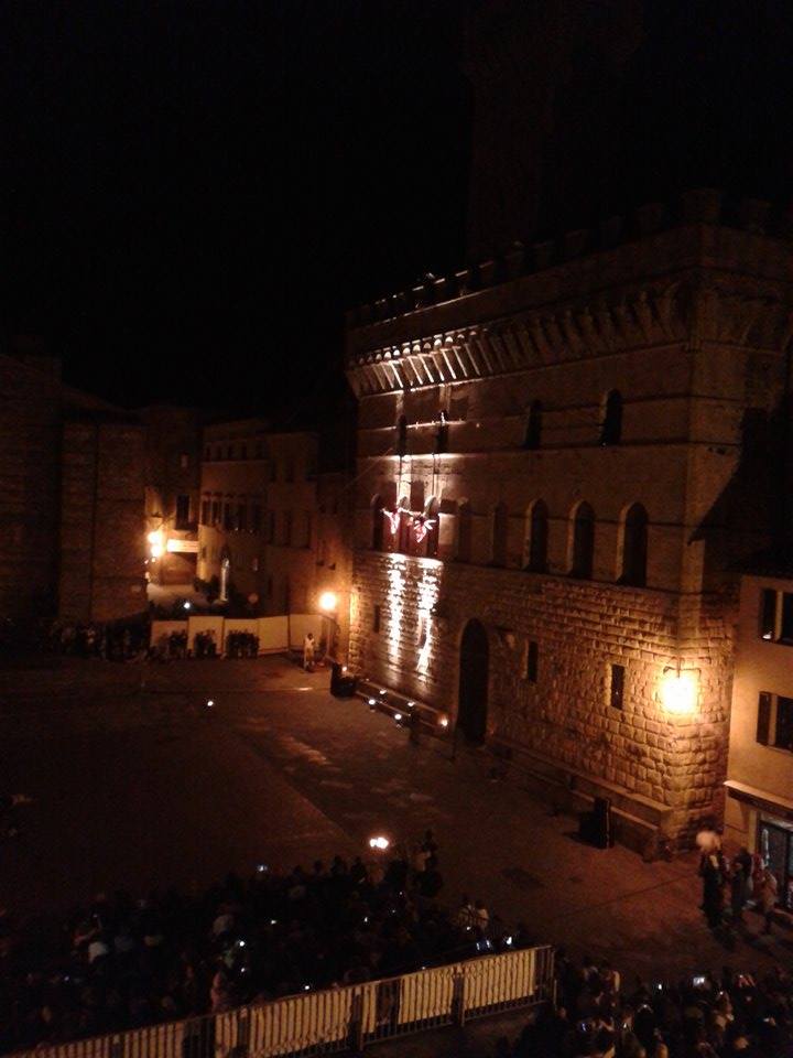E l’allaccio con la modernità è avvenuto nel migliore dei modi con lo spettacolo di danza verticale che ha seguito la sbandierata. La compagnia Il Posto ha portato sulla piazza l’ interpretazione dello spazio scenico che questa offriva.