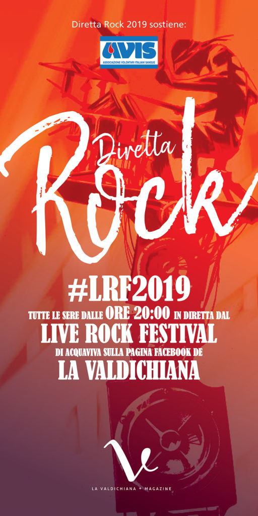 Dopo le edizioni del 2015, del 2016, del 2017 e del 2018, la nostra redazione tornerà a raccontarvi in maniera esclusiva e coinvolgente il festival: tutte le sere tornerà infatti Diretta Rock, a partire dalle ore 20, in streaming su Facebook Live sulla pagina de “La Valdichiana”, con possibilità di interazione in prima persona nello stand allestito nei giardini. Le puntate giornaliere saranno poi raccolte nel nostro canale YouTube e su questo speciale, in modo da avere un archivio di facile consultazione.