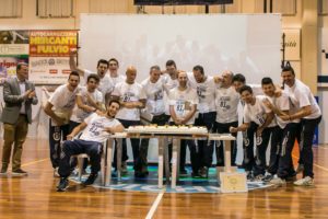 La parte successiva dello spettacolo ha visto entrare in scena il Presidente Bisogno, che con le sue parole cariche di soddisfazione, determinazione e di ottimi propositi per il futuro della squadra, ha infiammato il pubblico del palazzetto e ha dato il via alle varie “passerelle” di collaboratori, consiglieri della società e staff medico, che uno ad uno sono stati invitati in campo per raccontare aneddoti, ma soprattutto per ricevere doverosi ringraziamenti e calorosi applausi. Il momento clou è iniziato con l’entrata in scena dello staff tecnico, a partire dal direttore sportivo Fabio Mechini, passando poi al secondo allenatore Massimo Marchettini fino al mister Romano Giannini, visibilmente emozionato, appagato per aver centrato tutti gli obiettivi e appena riconfermato per il prossimo campionato.