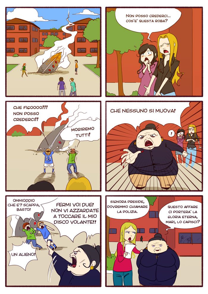 Dopo aver faticosamente trovato l’Aula 51, raggiungibile solo tramite il wormhole nello sgabuzzino della palestra, Sophie comincia finalmente a socializzare con i giovani poliziani, ma le sue dichiarazioni filo-vegane non vengono ben accolte. All’improvviso, dal cielo piove un UFO…
