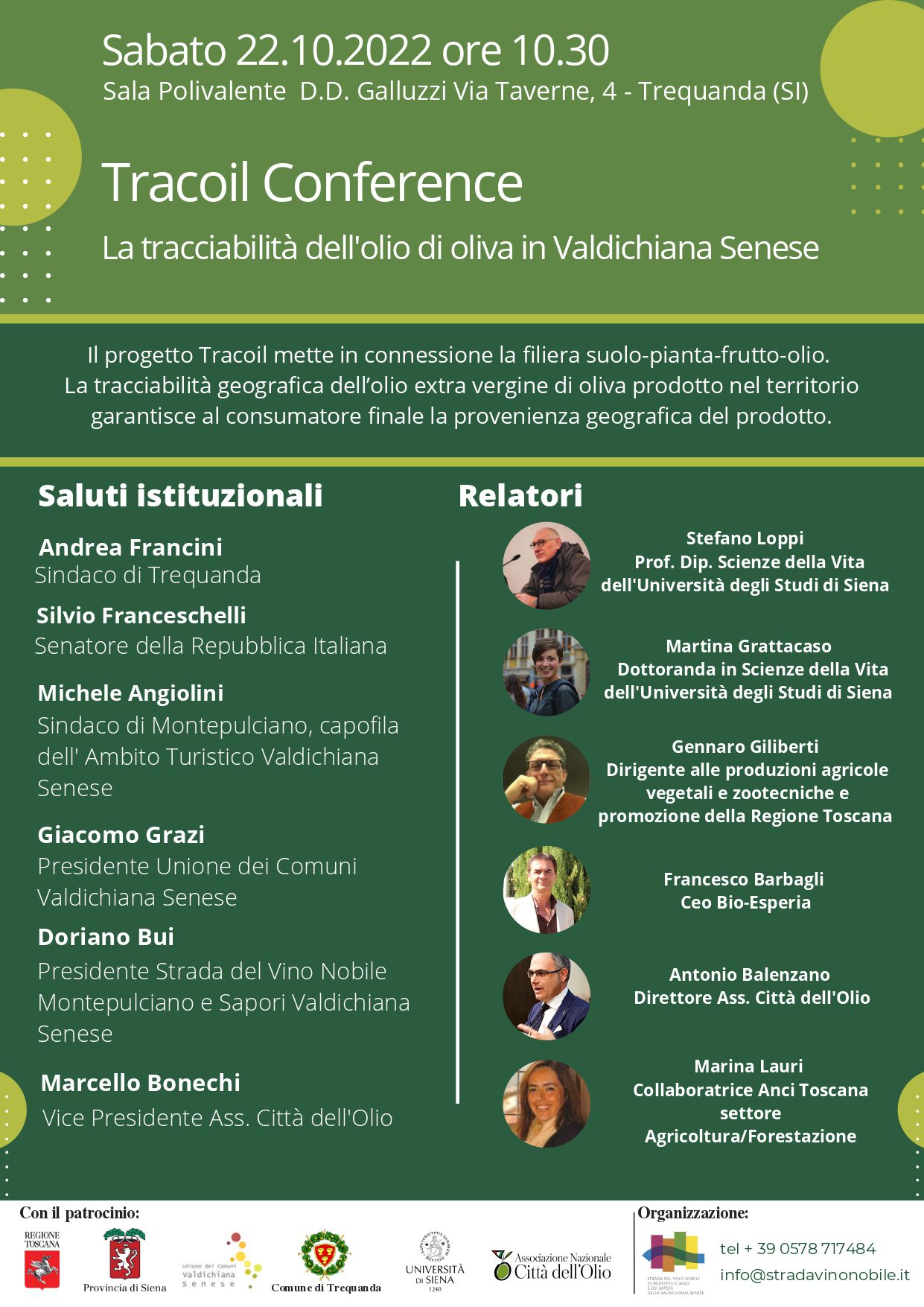 La manifestazione comincia venerdì 21 ottobre alle 21 con la visita guidata “Una notte al museo etrusco” presso la sala polivalente. Sempre nello stesso luogo, sabato 22 ottobre alle ore 10:30 si terrà invece la 36° edizione del Convegno sull’olio novo di podere dal titolo “Tracoil conference: la tracciabilità dell’olio di oliva in Valdichiana senese”.