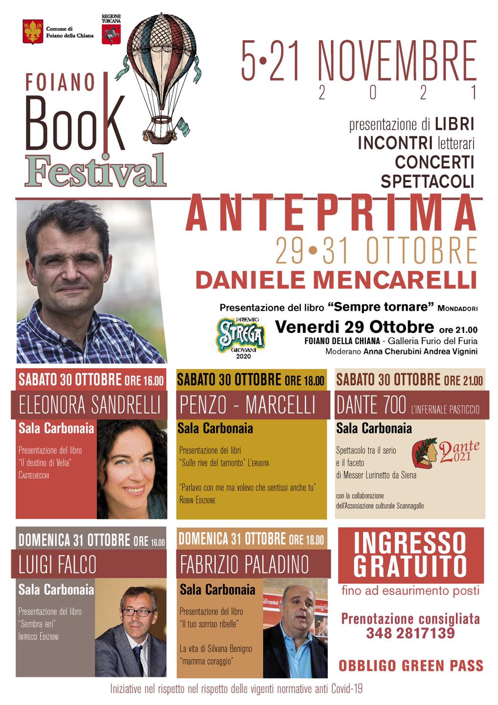 Il Festival organizzato dal Comune di Foiano della Chiana, con il patrocinio della Regione Toscana, andrà dunque in scena dal 5 al 21 Novembre. Sedici giorni animati da incontri, dibattiti, concerti, spettacoli teatrali e dalla presenza di tanti importanti autori che si susseguiranno nel Paese del Carnevale. Ma non è tutto qui, infatti l’evento principale sarà preceduto da una gustosa Anteprima nel weekend 29-31 Ottobre introdotta dal Premio Strega Giovani 2020 Daniele Mencarelli con la sua ultima fatica letteraria, a cui seguiranno le presentazioni delle opere di alcuni meritevoli autori locali ed emergenti.