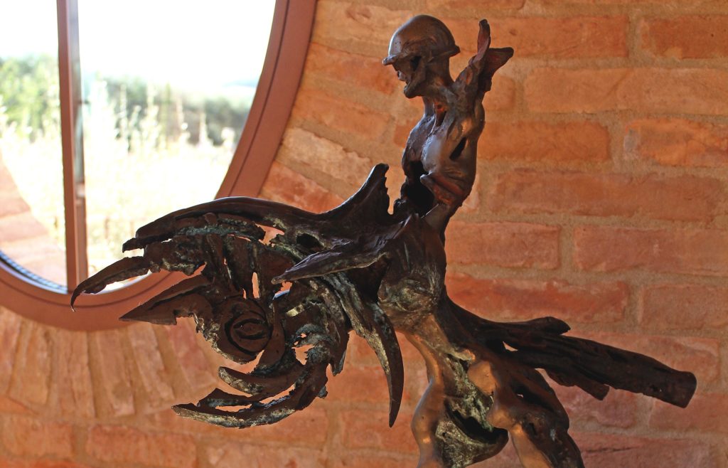«La scultura ben si inserisce in un parco, dove la vegetazione fa da cornice viva e vitale e questa vitalità viene assunta dalle opere – spiega Adelmo – Pietro è infatti un fonditore, e le installazioni presenti per la mostra a Villa Trecci sono state realizzate proprio nella sua fucina, che il grande pubblico ha già potuto scoprire, anche se solo in un dettaglio, nella sigla della serie I Medici: il giglio in ferro battuto che vi compare è infatti un’altra opera nata dalle mani di Pietro.
