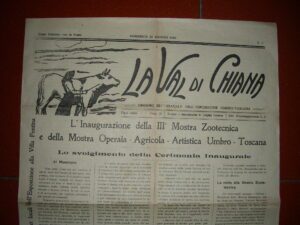 “La Val di Chiana” era l‘organo settimanale dell’Esposizione Umbro-Toscana, una pubblicazione periodica di Castiglion Fiorentino che si occupava del nostro territorio, risalente agli anni ’20. Ogni copia costava venti centesimi, come potete vedere dalle foto.