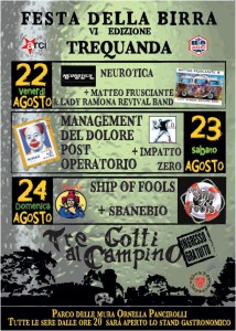Quindi se volete passare delle serata all’insegna della buona musica, dell’ottima birra e di ottima cucina non resta che scegliere i Tre Gotti al Campino, Parco della Mura “Ornella Pancirolli” – Trequanda dal 22 al 24 agosto. INGRESSO GRATUITO