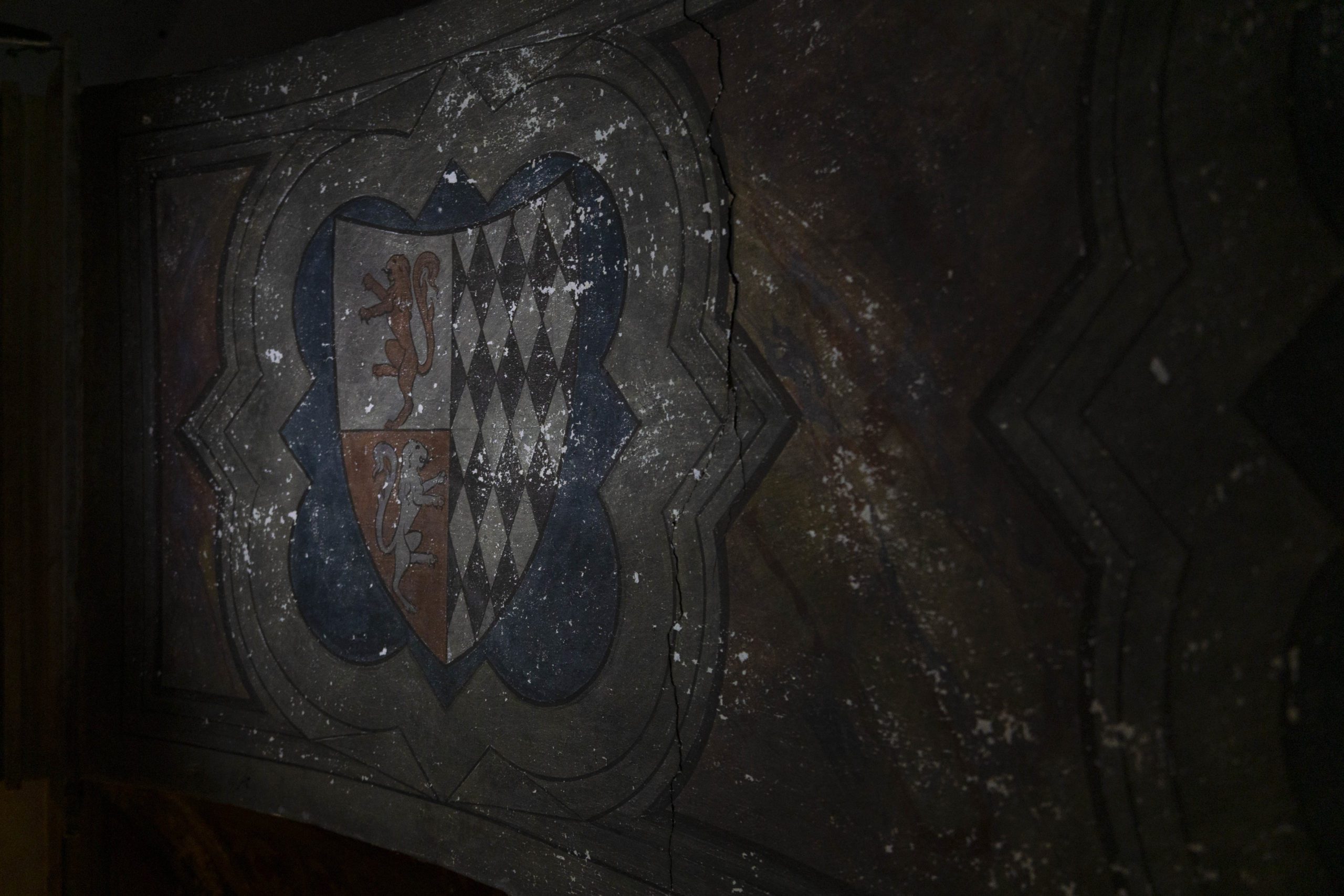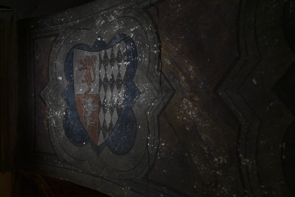 È solo quando entriamo nella stanza interrata che ci si accorge delle stupende decorazioni che sono appese alle pareti. Sono scarsamente illuminate dalla luce gialla di due lampade attaccate al soffitto, ma tanto basta per cogliere subito i primi dettagli. Si tratta di due grandi corone floreali, che nonostante gli anni pare abbiano conservato vita e colori. La linfa sembra non essersi mai esaurita e rose bianche e fiori candidi completano la composizione che sembra composta soltanto qualche ora prima, tanto appaiono freschi i petali. Viene da chiedersi “com’è possibile?”. Ma la domanda si dissolve in una frazione di secondo, appena si capisce che foglie e fiori sono forgiati in metallo. Un nastro scuro, anch’esso in metallo sottile, cade lungo la circonferenza dando l’impressione di leggerezza e delicatezza. I dettagli sono maniacali, coperti solo dalla polvere e dalle ragnatele.
