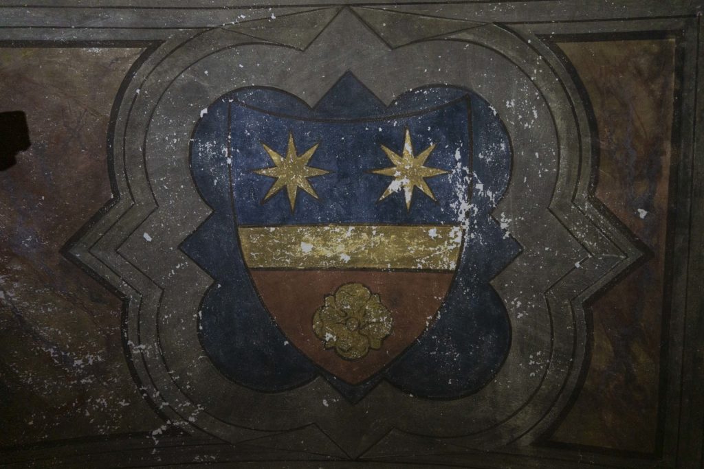 Gli altri tre lati della stanza comunicano con piccole cripte. In ciascuna le decorazioni floreali costituiscono l’unico arredo. Adagiate per terra o appese alle pareti, queste opere di fine artigianato sono il tributo che i familiari hanno dedicato al caro defunto. Presumibilmente si tratta di oggetti che solo famiglie facoltose potevano permettersi. Non a caso, in una delle stanzette mortuarie sono dipinti due stemmi araldici di ignote famiglie foianesi: una peculiarità condivisa soltanto dai nobili. Di questa anche il soffitto è decorato. Sembra di stare sotto un cielo notturno illuminato da stelle dorate.