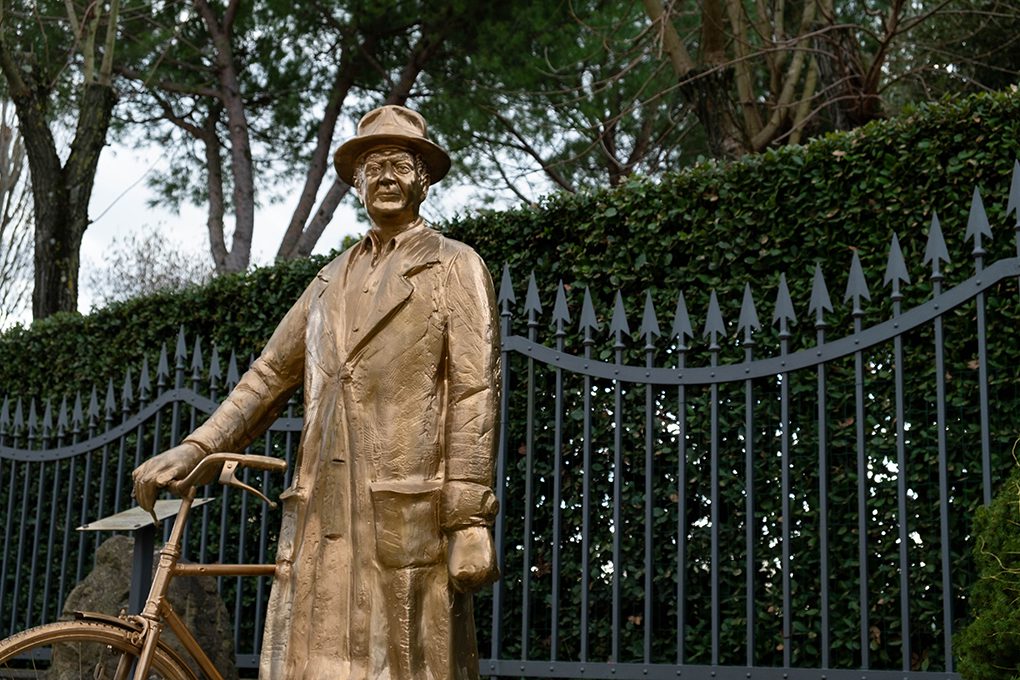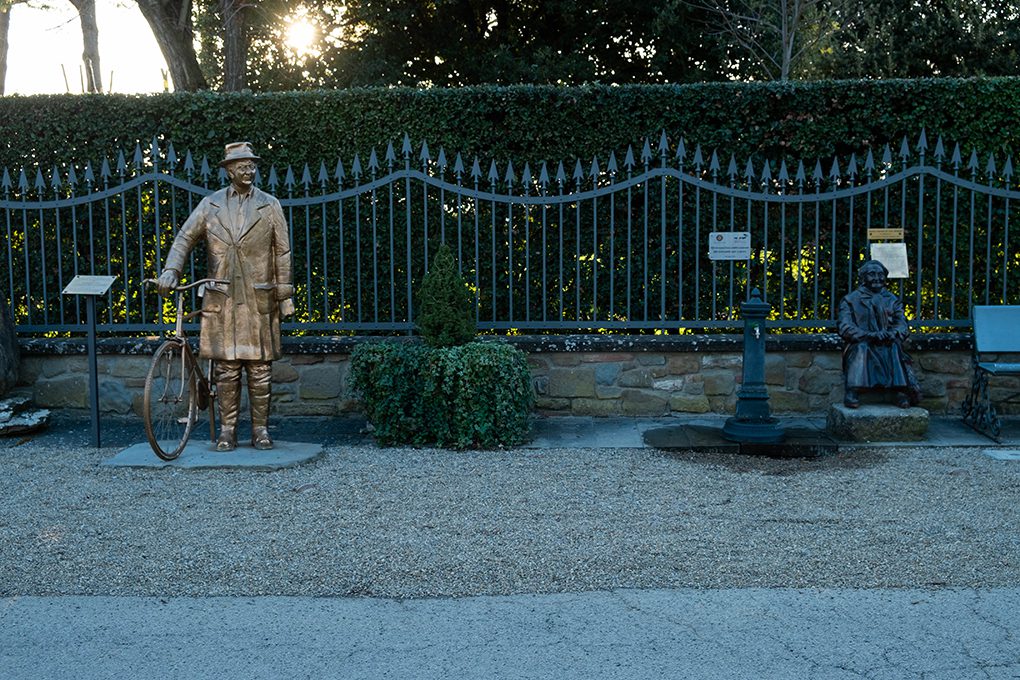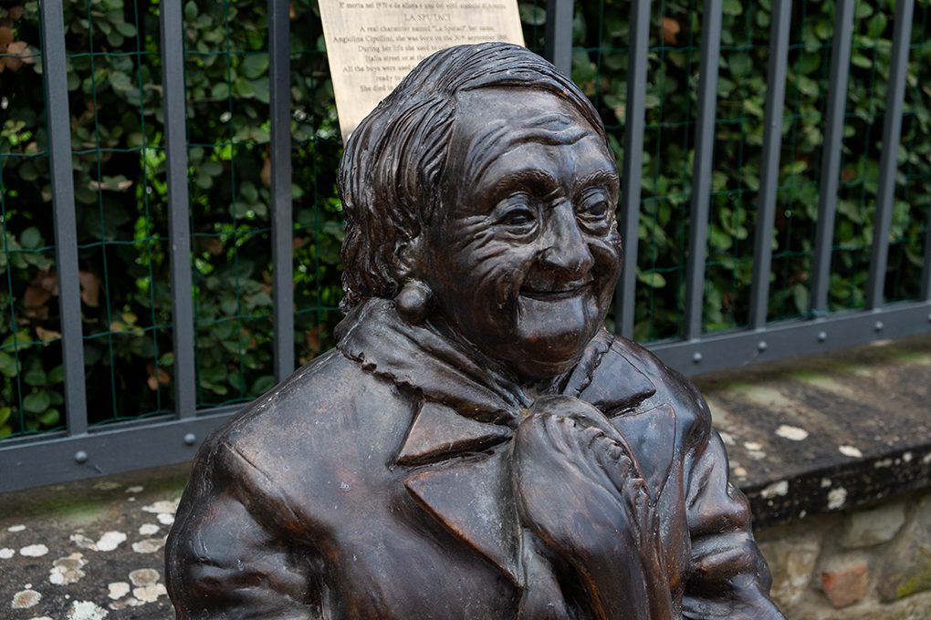 Lungo il perimetro dell’ex Magazzino del Grano una coppia di sculture attira l’attenzione dei passanti. Le statue, entrambe firmate dall’artista Lucio Minigrilli, raffigurano l’Omino d’Oro e la Sputaci, due personaggi piuttosto noti della storia locale aretina. Fra le due opere, una fontanella d’acqua invita a rinfrescarsi prima dell’ultimo miglio prima della Chiusa dei Monaci.