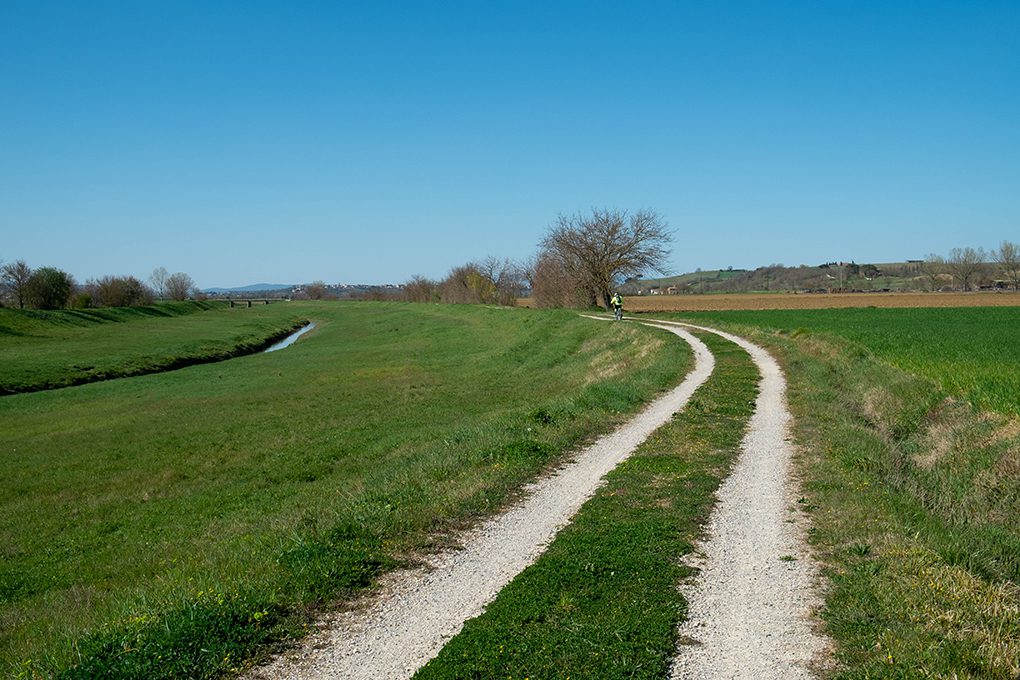 Non manca molto per vedere il primo frutteto del circondario. Tutto dritto e senza fatica (salvo vento contrario), i terreni coltivati si somigliano finché l’itinerario si allarga e si biforca. Dando la schiena a Foiano della Chiana, girando a sinistra si continua il viaggio alla volta di Arezzo, mentre a destra si può imboccare il Sentiero dei Principes Etruschi.