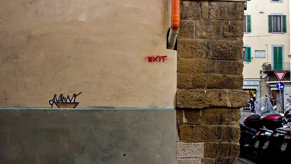 ExitEnter è un anonimo street artist di Firenze. Oggi sembra quasi impossibile pensare che ci sia qualcuno che non abbia ancora visto una sua opera in giro per i muri della città. I suoi disegni stanno diventando parte di Firenze e mi auguro che con il tempo arrivino a essere identificati con la stessa idea che si ha di questa città, che oggi è rappresentata dal David di Michelangelo, da Pontevecchio, da Santa Maria del Fiore e da tutti quei capolavori del Rinascimento. Le opere di ExitEnter sono sicuramente parte della vita quotidiana di chi vive Firenze, perché se passeggi in compagnia, se cammini da solo, se vai al lavoro o se torni a casa, ti troverai inevitabilmente di fronte a uno dei suoi inconfondibili disegni e magari a riflettere sul loro significato.
