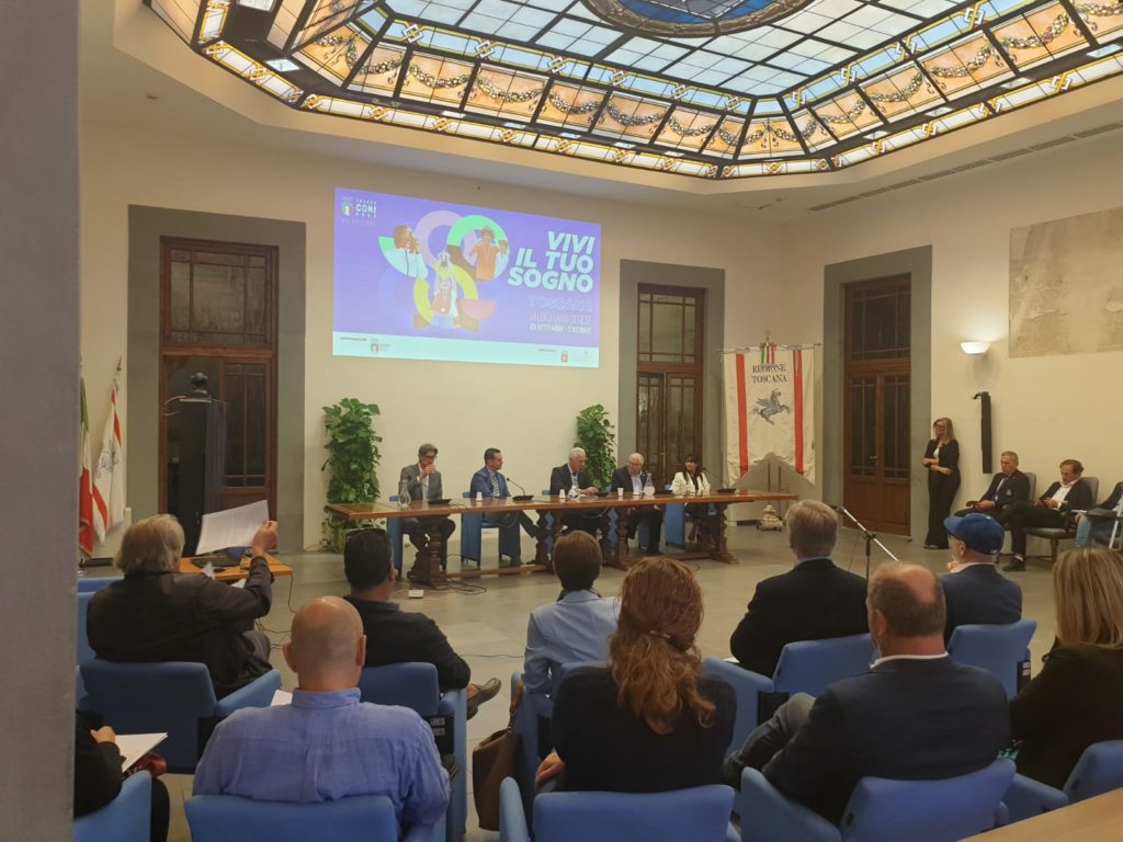 Il Trofeo CONI è stato presentato mercoledì 21 settembre, presso la sede della Giunta Regionale, dal presidente della Regione Toscana, dal presidente dell’Unione dei Comuni della Valdichiana Senese, dal sindaco di Montepulciano, che è Comune capofila dell’ambito turistico della Valdichiana Senese, dal presidente regionale CONI Toscana Simone Cardullo e dalla coordinatrice del Trofeo CONI 2022 Clelia Merola Ricca.