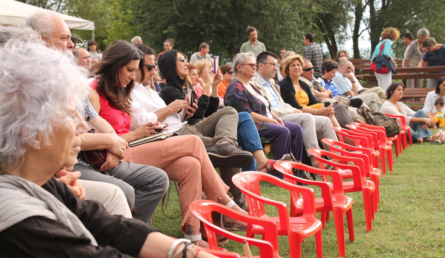 Il cielo ha minacciato pioggia per tutta la sera, e le nubi temporalesche non facevano presagire nulla di buono: e invece la nutrita platea che si era radunata al centro visite “La Casetta” del Lago di Montepulciano è stata risparmiata dall’acquazzone, e ha potuto godersi un interessante incontro pubblico con Serge Latouche. Il dibattito si è svolto all’aperto, nei giardini a fianco del Sentiero della Bonifica, e i tanti spettatori giunti per l’occasione si sono dimostrati partecipi e incuriositi, contribuendo al successo dell’iniziativa con domande e approfondimenti.