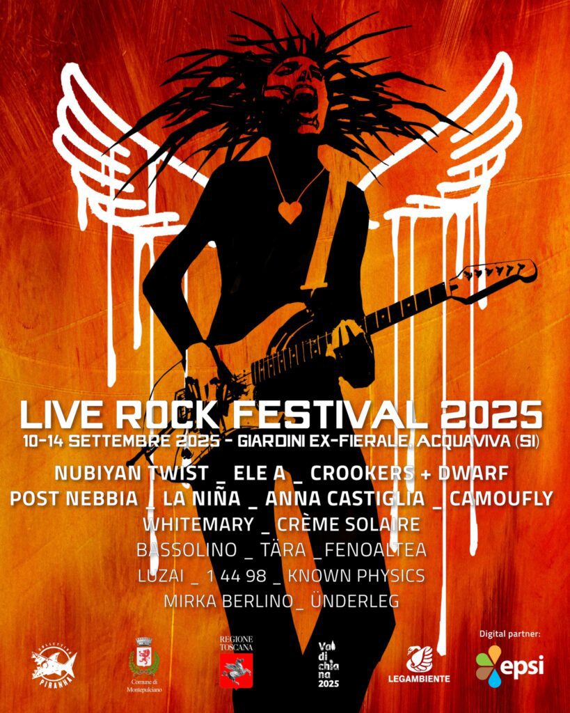 Live Rock Festival 2025: Acquaviva si accende dal 10 al 14 settembre presso i giardini ex Fierale. Cinque giornate e diciotto concerti per l’edizione numero 29 del festival musicale più amato del territorio.