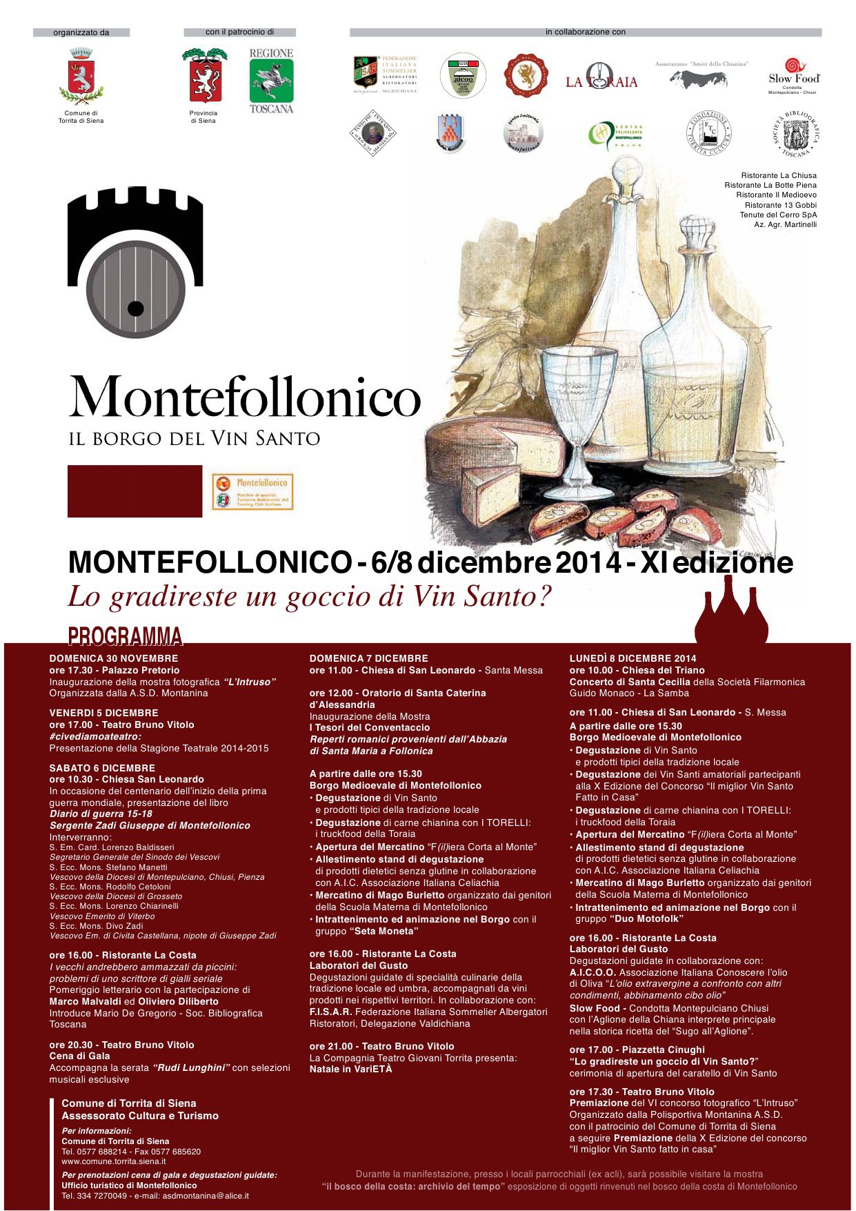 A Montefollonico, Torrita di Siena, dal 6 al 8 dicembre 2014, torna “Lo gradireste un goccio di vinsanto?”, manifestazione enogastronomica dedicata al Vinsanto.