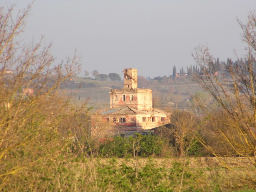 Il Torrione si trova in fondo alla Fila, la lunga strada nei pressi di Valiano che attraversa i poderi dell’antica fattoria, attorno a cui hanno vissuto generazioni di mezzadri, i pilastri della civiltà contadina da cui si è originata l’attuale Valdichiana. È stato utilizzato come granaio, come magazzino, come sede di scuole primarie per tanti figli di contadini, come punto di avvistamento privilegiato sulla bonifica e sulla mezzadria.