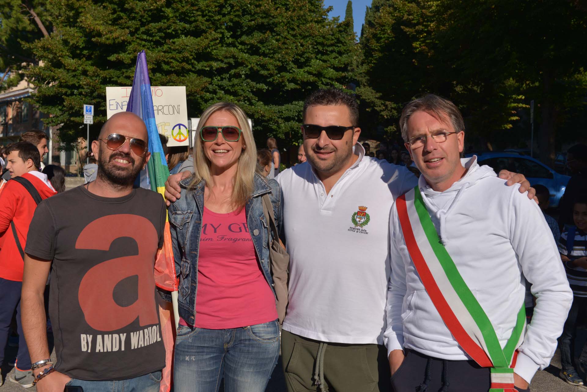 Alla marcia della pace di Chiusi, arrivata quest’anno alla quarta edizione, oltre a tanti ragazzi delle scuole con i loro insegnanti e il dirigente scolastico, il parroco e rappresentanti dei genitori hanno partecipato anche rappresentati dell’associazione Volto Amico di Montallese, dell’Auser, dell’associazione per i diritti per gli anziani (ADA) nonché gli uomini della Pubblica Assistenza e dagli uomini delle forze dell’ordine che per tutti il tragitto hanno “scortato” i ragazzi per assicurare loro la massima sicurezza possibile.
