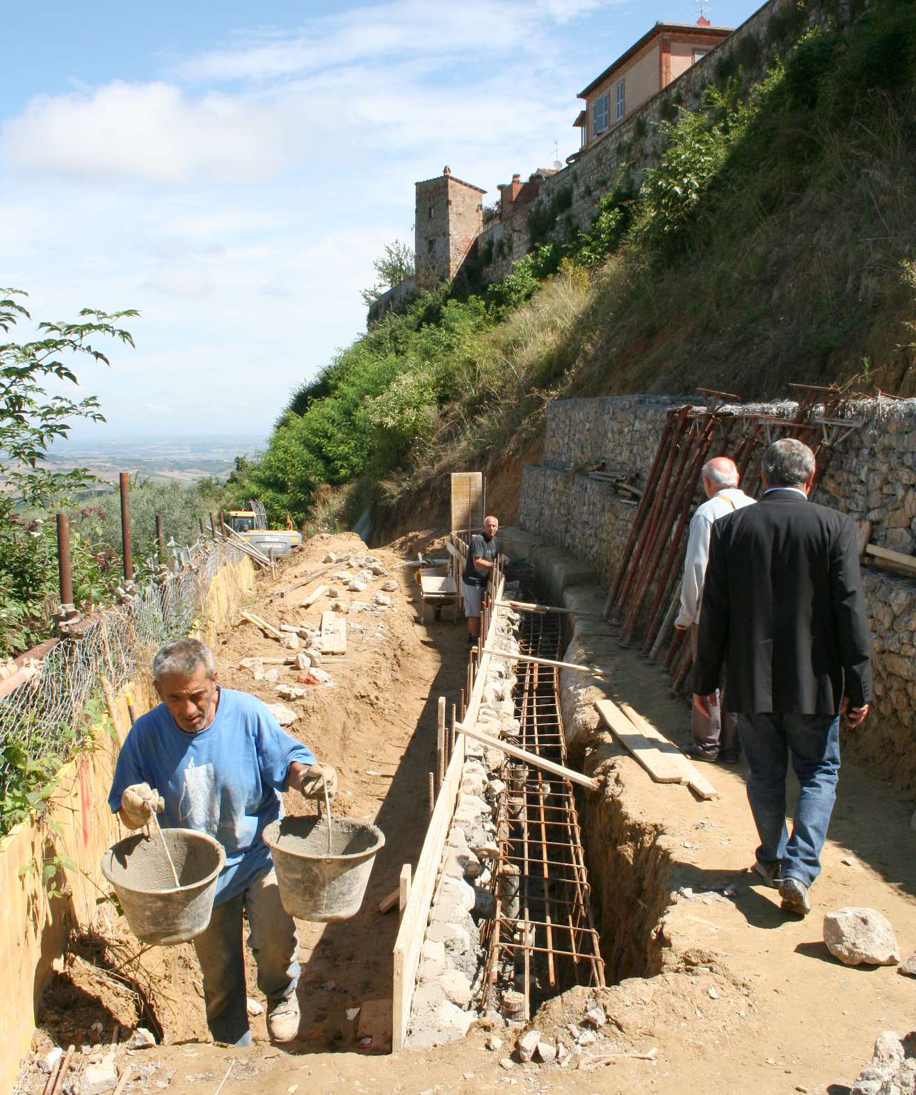 Già programmati i lavori di ripristino dei cedimenti delle mura. Frana di Canneto: a Montepulciano opere in pieno svolgimento