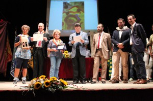 Oltre alla presentazione del panno, il Teatro Poliziano ha ospitato un ricco pomeriggio di premiazioni. Si è svolta, infatti, anche la premiazione del concorso “A Tavola con il Nobile”, la sfida ai fornelli ideata dal Consorzio del Vino Nobile con il giornalista del Tg2, Bruno Gambacorta, il cui obiettivo è quello di sposare al meglio il Vino Nobile con il piatto proposto. Dopo l’esperienza dei “pici” e della “nana” nella scorsa edizione, quest’anno il piatto base è stata “La Cinta Senese” e il primo premio è andato, per il secondo anno consecutivo, alla contrada di Talosa con la “Zuppa di cinta senese con pici”, in abbinamento a Salcheto Nobile di Montepulciano e Cantucci Pietrarossa 2011, con un punteggio di 386 e realizzato dalla signora Marisa. Secondo premio alla Contrada Poggiolo con “Maccheroni nobili al rustico di cinta senese con crema di pecorino gran riserva” e terzo posto alla Contrada Collazzi con i “Maccheroni con farina rustica al sugo della festa”. Sul palco per la premiazione Fabrizio Parisotto Salce, da 12 anni direttore responsabile del programma televisivo Agrisapori che va in onda su 150 emittenti in Italia e nella Svizzera italiana, Anna Scafuri del TG1 e Claudio Vismara di Mototurismo, oltre alla giornalista americana Shawn Dore nonché Brand Ambassador del Vino Nobile negli USA.