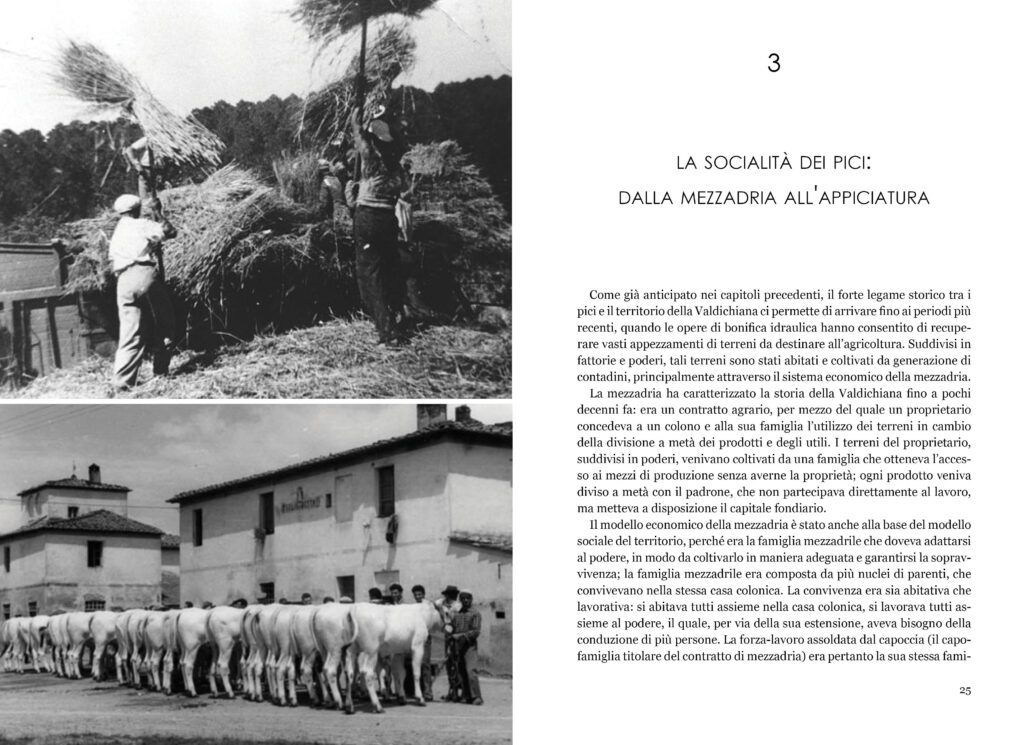 Il volume, pubblicato nella collana dedicata al territorio della Valdichiana, è frutto di una ricerca storica e antropologica, in cui si affronta tutto ciò che riguarda questa pasta tipica della tradizione contadina, conosciuta fin dall’epoca etrusca. Passando per la mezzadria fino alle attuali sagre popolari, gli autori si soffermano sulle pratiche sociali e sulle attività di tutela e valorizzazione. Inoltre, il libro contiene la ricetta per realizzare i pici fatti a mano, con il disciplinare di produzione degli Amatori Pici Chianciano, e quattro condimenti tipici della tradizione contadina della Valdichiana: sugo all’aglione, sugo alle briciole, ragù di chianina e ragù di ocio.