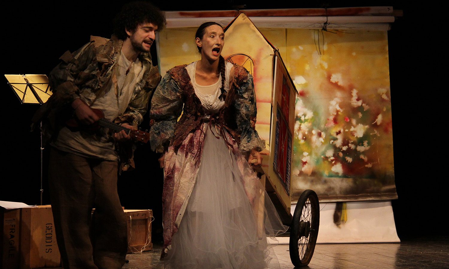 Maria Claudia Massari ha lungamente approfondito il teatro d’immagine: la sua formazione a Parigi, presso la Ecole Internationale de Mimodrame de Paris Marcel Marceau e Ecole de l’Acteur François Florent, determina una forte cognizione del teatro di maschera. «Lo spettacolo è un tributo ai miei maestri, Marcel Marceau, Ferruccio Soleri… le maschere sono sempre un bellissimo tema di lavoro» continua Maria Claudia Massari, che da sola, sul palco, interpreta i tre personaggi, senza l’uso della maschera fisica «Ovviamente ho lavorato in maniera non convenzionale: il mio Arlecchino è molto timido, anche se seduttore, non di certo paragonabile a quello di Soleri o di Moretti…».