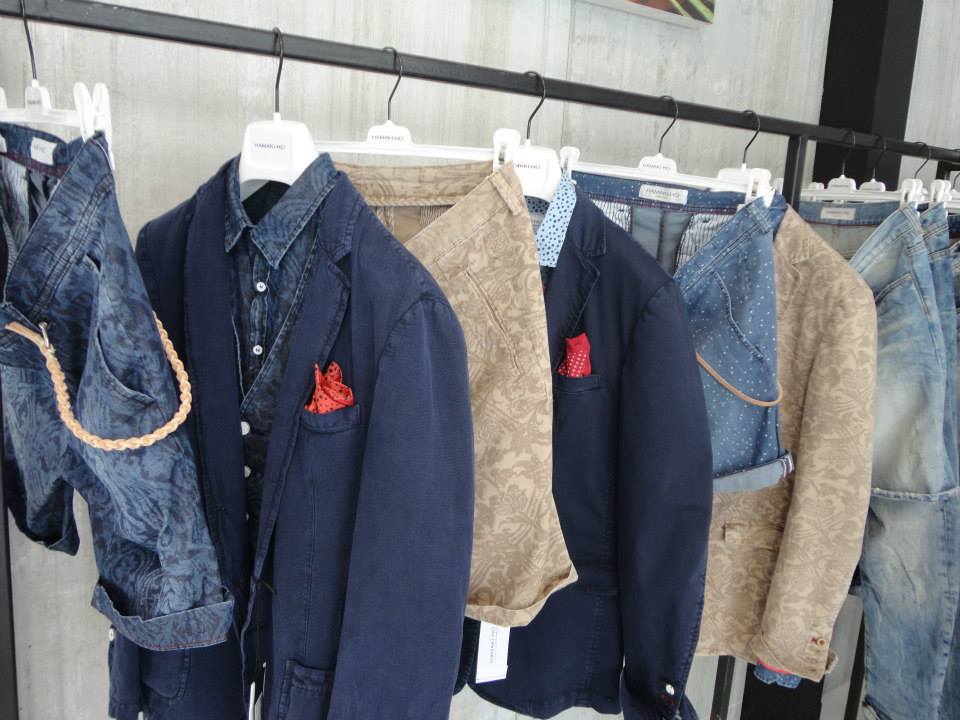 Dopo una mezz’ora di giro, la mia attenzione viene bloccata da un duo particolare vestito con abiti a pois, verdi, bianchi, neri e tanti pois che si stavano facendo fotografare davanti ad una scenografia che ricreava il più famoso social network che conoscete. Una comunicazione formidabile. Devo assolutamente saperne di più! Entro in questo padiglione e faccio la conoscenza di Ludovica Brigante, ufficio stampa di HAMAKI-HO, azienda leader del menswear tutto italiano, punta del gruppo Sorbino che mi spiega con grande meticolosità tutta la collezione 2015.
