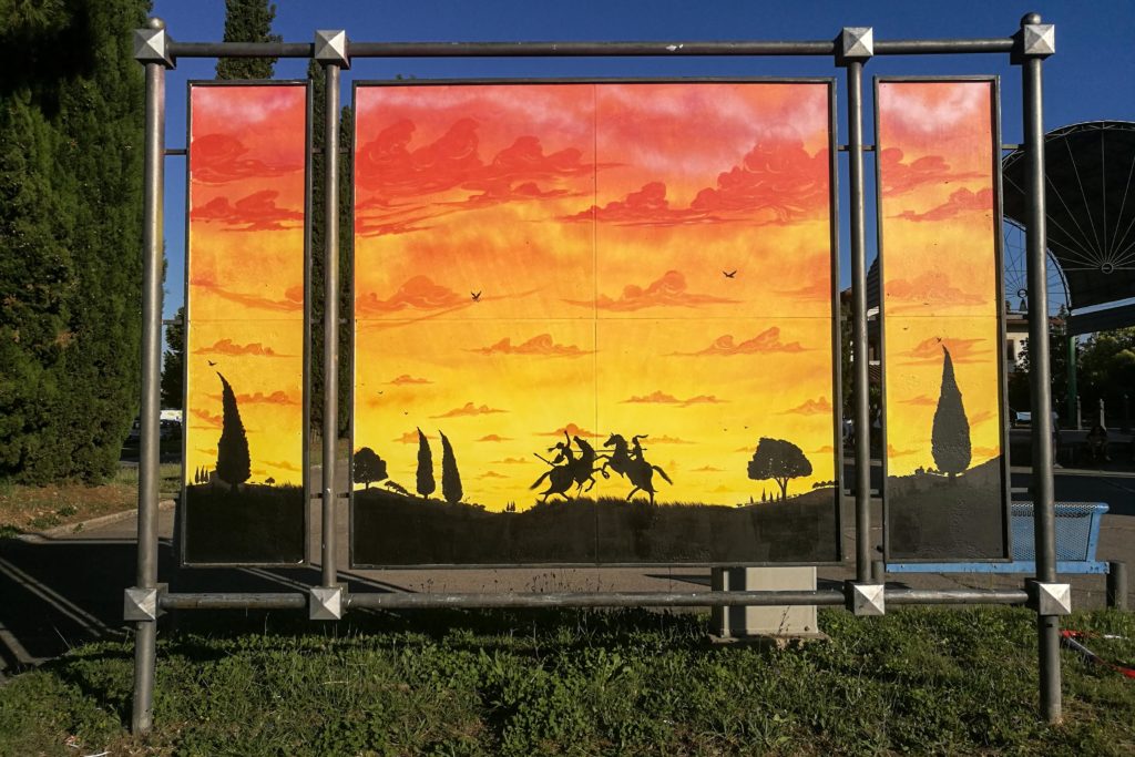 Il progetto di riqualificazione dei borghi di Civitella, Pieve al Toppo, Badia al Pino e Tegoleto, voluto dalla giunta comunale, è stato affidato al famoso street-artist Exit Enter, che ha dipinto su bacheche dismesse scene della storia dei quattro paesi chianini – Intervista.