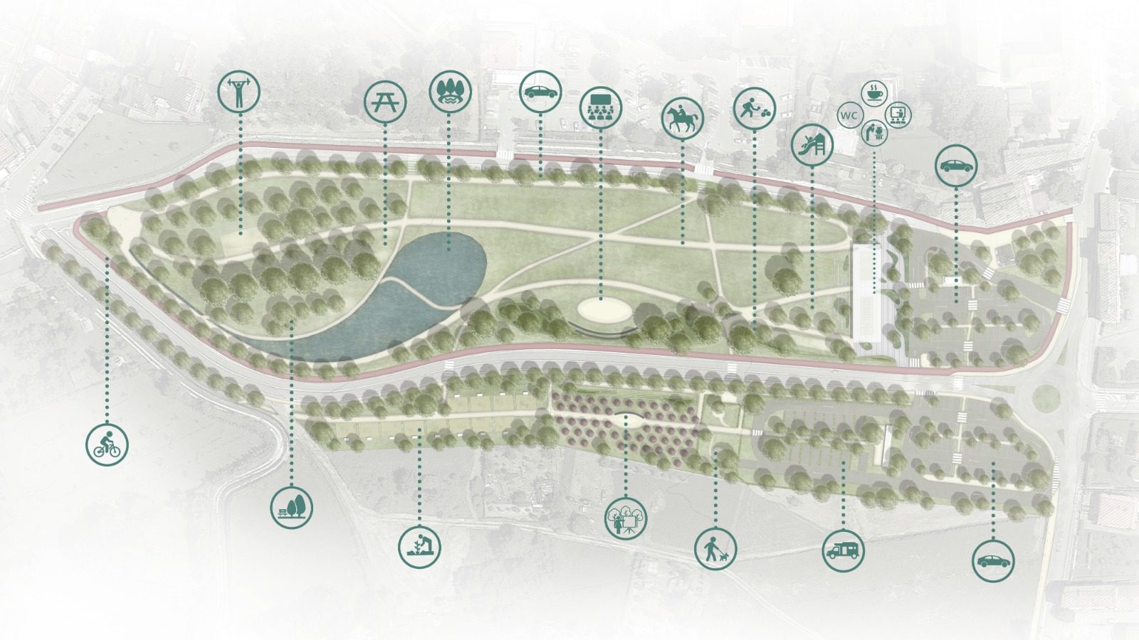 È stata concepita una viabilità pedonale e ciclabile interna al parco per migliorara i collegamenti interni e con il resto della viabilità cittadina e, al tempo stesso, per passeggiare o fare attività fisica. Grande attenzione è stata data alla componente arborea, in modo da creare molte zone ombreggiate all’interno del parco con la messa a dimora di essenze autoctone ad alto fusto e frutti di medio basso fusto, oltre ad arbusti capaci di aumentare la diversità biologica dell’area. Verrà mantenuta una grande area aperta, capace di poter ospitare eventi culturali di grandi dimensioni come concerti, manifestazioni sportive senza precludere, al tempo stesso, la possibilità di correrci la Giostra del Saracino.
