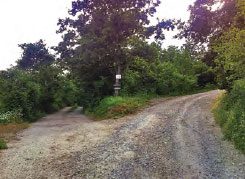 Al km 9.6 della strada della Montagna si trova il piazzale detto i Cancelli Provenendo da Sarteano si trova una strada sterrata sulla destra (foto 6.1). Percorsi poco più di 100 metri si sale sulla destra (foto 6.2) passando accanto ad una cava dismessa e dopo altri 200 metri (poco prima dell’abitato Valle Saccaia) si trova a destra la strada (foto 6.3)
