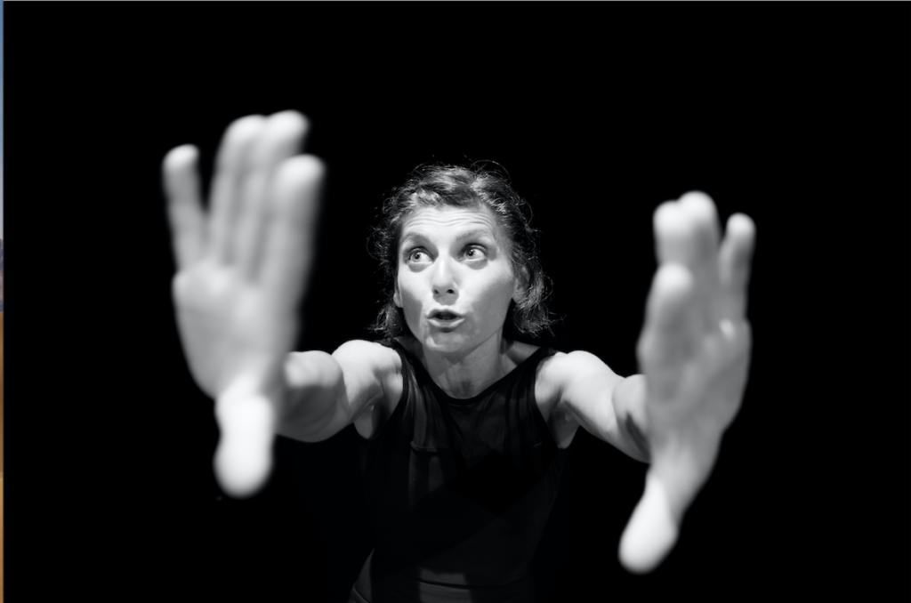 Sulla scena sei vestita completamente di nero su fondale nero. Il tuo corpo sembra voglia mimetizzarsi, così come il corpo, di cui si racconta nello spettacolo, sembra scomparire. Nel modo con cui hai impostato la scena, in questo affidare tutto al volto, ai gesti, alle mimiche, è in qualche modo un richiamo ai contenuti del testo?