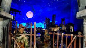 “È ispirato alla vecchia Francia, alla Normandia per l’esattezza. Lo sfondo paesaggistico è ispirato a quelle zone. L’atmosfera è molto realistica, pur senza perdere quel tocco di magico. Ci piace pensare a un extra-mondo in cui lo spettatore può entrare in questa dimensione e tornare bambino, come per rivivere una favola. Abbiamo lavorato molto sul cielo, che è stata anche la parte più difficile, perché costellazioni e luna non dovevano rompere la dimensione prospettica di tutto il modello.”