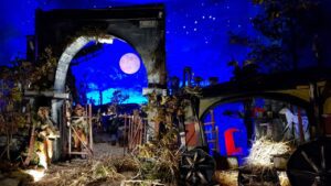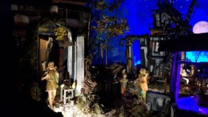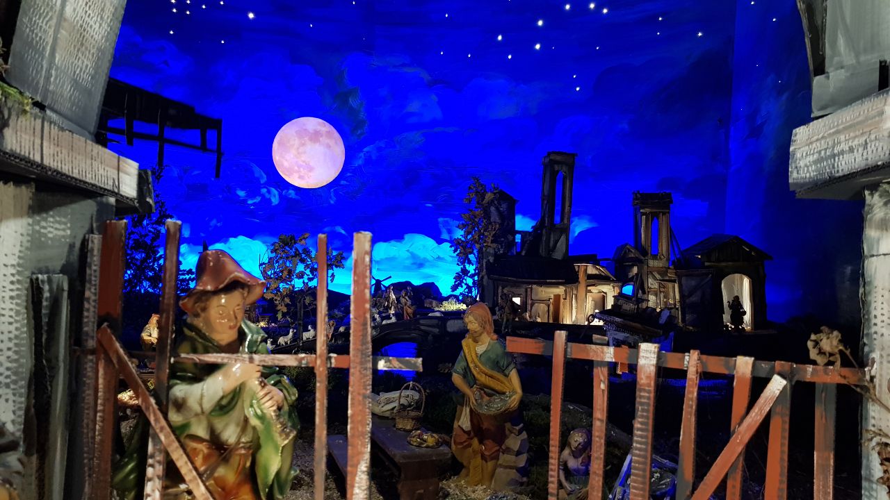 “Quest’anno abbiamo utilizzato il cartone al posto del polistirolo, che usavamo in passato. Il resto è materiale naturale, cartongesso per il cielo e l’illuminazione al led. In particolare, abbiamo cercato di ricreare in maniera realistica anche le ombre proiettate dalle luci della notte. Abbiamo ricevuto molto supporto da persone che volevano dare una mano, poi ci sono stati offerti materiali per la costruzione da aziende locali. La cosa più importante per noi è essere ripartiti con questo viaggio natalizio, che non era stato possibile ricreare per troppi anni.”