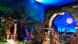 Il Presepe d’Arte si intitola “Ti lascio solo per un momento” ed è stato organizzato come un palco teatrale, con un proscenio e linee di profondità; è un presepe che parte da un’idea classica, ma che si muove verso simbologie e significati contemporanei, con un tocco magico in stile più “fantasy”. Abbiamo intervistato gli autori, per comprendere meglio la loro creazione.