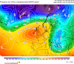 Fino al 12 febbraio le nostre regioni sono interessate da una perturbazione di origine nord europea, la quale sta insistendo sul bacino del mediterraneo a causa della risalita verso le isole britanniche dell’anticiclone atlantico. La perturbazione insisterà per i prossimi due giorni sulle nostre regioni causando precipitazioni persistenti con accumuli giornalieri elevati. Nei primi giorni della nuova settimana la parte più orientale dell’anticiclone atlantico interesserà gradualmente la nostra penisola, regalandoci un tempo secco ed asciutto ma con un deciso calo delle temperature minime mattutine.