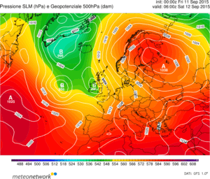 Lentamente ma inesorabilmente, a causa del cambiamento stagionale, le aree di basse pressioni che per quasi tutto il periodo estivo sono rimaste confinate a latitudini molto settentrionali, stanno pian piano guadagnando terreno nei confronti delle zone di alta pressione con irruzioni nel bacino del Mediterraneo. La carta barica continentale prevista per sabato ci mostra infatti una vastissima zona alto pressoria sopra la Russia la quale non ci interesserà direttamente, ma durante il suo lento spostamento verso est lascerà il campo ad un minimo depressionario, attualmente in formazione sulle isole britanniche, che interesserà le regioni del nord ovest e centrali italiane tra domenica e lunedì prossimi. A seguito del passaggio dell’ area perturbata si instaureranno condizioni di pressione non molto alta che favoriranno condizioni di generale instabilità, ma che non dovrebbero portare a fenomeni associati di particolare importanza.