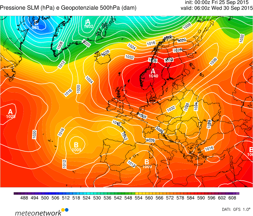 Lo scenario barico a livello continentale è piuttosto complesso e in costante evoluzione, caratterizzato inizialmente da una vasta area di alta pressione, che impedirà alle intense perturbazioni atlantiche di interessare direttamente il bacino del Mediterraneo e di conseguenza la nostra penisola. Tuttavia il graduale aumento della pressione atmosferica della suddetta area anticiclonica, associato al suo lento spostamento verso est, lascerà il campo libero sul fronte occidentale per l’inserimento di veloci correnti atlantiche, le quali gradualmente instaureranno le condizioni per la formazione di due minimi depressionari sul Mediterraneo occidentale a partire dalla metà della prossima settimana.