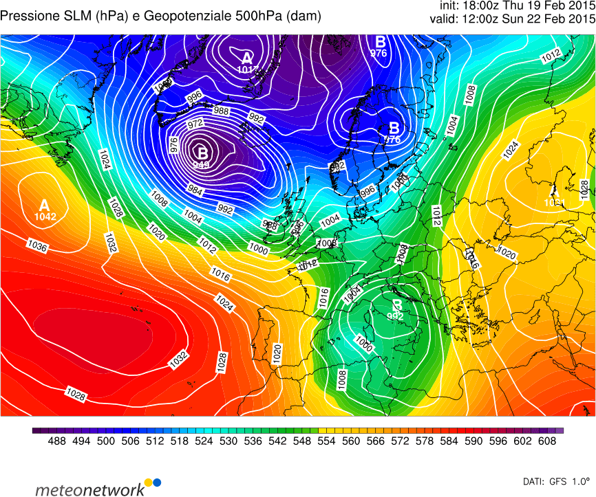 Lo scenario continentale vede lo sviluppo delle perturbazioni atlantiche a latitudini piuttosto alte, lasciando il bacino del Mediterraneo centrale libero da inserimenti perturbati, mantenendo un tipo di tempo sulle nostre zone di “inverno temperato”. Questa situazione si modificherà nettamente quando, come previsto per i prossimi giorni, una profonda saccatura andrà a formarsi proprio sulla nostra penisola con un minimo depressionario piuttosto basso.