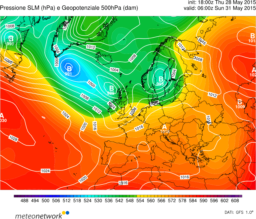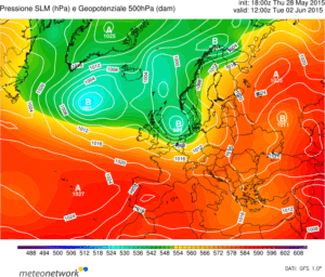 Continua lo scorrimento alle latitudini più settentrionali delle perturbazioni portatrici di maltempo. Tuttavia, la situazione barica a livello continentale vede ad est una vasta area anticiclonica, che con la sua parte meno intensa tende ad interessare le regioni dell’Europa centrale e del bacino del mediterraneo, mentre più a settentrione le basse pressioni nord atlantiche non riescono ad entrare sul continente a causa di un “cuscinetto” di pressione mediamente livellato che ne impedisce lo spostamento verso sud.