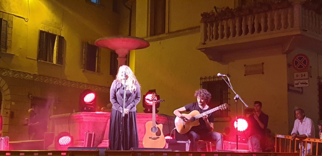 Nada, con la sua voce potentissima, rustica e abrasiva, al pubblico chiancianese ha riproposto molte canzoni di questi due dischi, partendo da “Sul porto di Livorno” e proseguendo con la popolare “Ma che freddo fa”; non ha tralasciato grandi successi come “Amore disperato”, “Il cuore è uno zingaro”, “Ti stringerò” e classici della tradizione popolare come “Maremma” e “Malachianta”. Non sono mancati brani dalla sua discografia da solista, inclusa la sua ultima fatica cantautoriale “È un momento difficile, tesoro”. Ad accompagnarla durante il concerto Andrea Mucciarelli, talentuoso chitarrista della scuola jazz/blues senese.